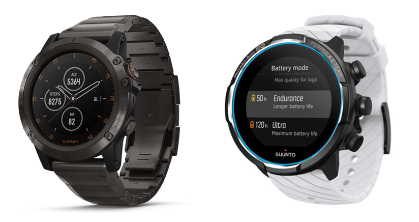 스포츠용 스마트워치의 대표적인 브랜드는 가민과 순토가 있습니다. 이 두 브랜드는 마치 나이키(NIKE)와 아디다스(ADIDAS)의 관계로 비유되기도 합니다. 가민(GARMIN)은 나이키처럼 미국 태생의 브랜드이며 GPS 관련 제품을 전문적으로 생산하던 기업으로 웨어러블 시장에서도 일반 전자기기 제조사에서는 따라올 수 없는 GPS 트래킹 기술력을 바탕으로 운동기능에 특화된 스마트워치들을 만들고 있습니다. 가자 상위 라인업인 피닉스 시리즈에서부터 러닝에 특화된 포러너 시리즈, 디자인적인 요소를 가미한 비보 시리즈 등이 대표적인 제품입니다. 순토(SUUNTO)는 핀란드 태생의 브랜드로 독일 태생인 아디다스와 같이 유럽 감성의 브랜드로 불리곤 합니다. 원래는 나침반을 전문으로 생산하던 기업이었으며 현재는 웨어러블 스마트 워치에 특화된 기업이라고 할 수 있습니다. 유럽의 자동차 회사들처럼 순토9, 순토7, 순토5, 순토3 등 숫자로 제품의 등급을 분류하는 감성도 가지고 있습니다. 가장 상위 제품인 순토9의 경우 강력한 내구성과 GPS모드에서도 최대 120시간이나 사용 가능한 엄청난 배터리 성능이 매력적인 제품이며 가장 최근 출시된 순토7은 구글OS와 자체 순토OS를 함께 탑재하여 편의성과 운동기능 모두를 만족시키고자 한 제품으로 눈길을 끌고 있습니다.