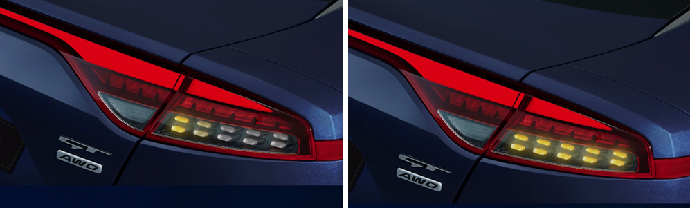 스팅어의 상징과도 같은 수평형 리어 콤비 램프는 더욱 세련되게 다듬어 졌습니다.