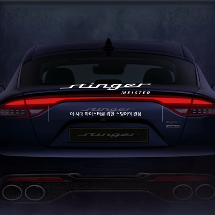 "이 시대의 마이스터를 위한 스팅어의 완성"이라는 강렬한 슬로건에 어울리는 디자인입니다.