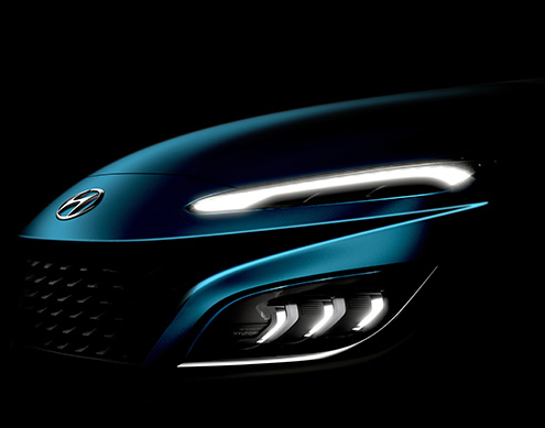 코나의 신차급 페이스 리프트, 상품성 개선 모델의 티저 이미지를 공개했습니다.