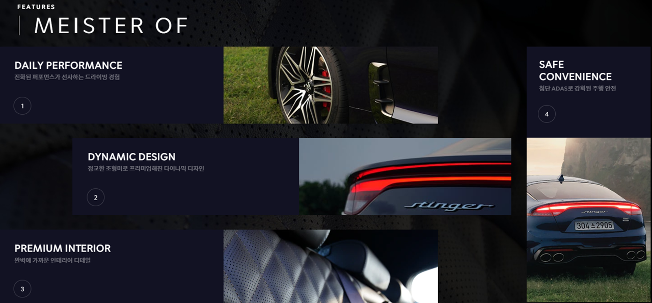 스팅어 마이스터 브랜드 쇼룸 홈페이지에는