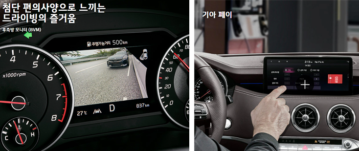 그밖에 후측방 모니터(BVM), 기아 페이, 리모트 360 뷰, 자동 외부 공기 유입방지 제어 기능 등