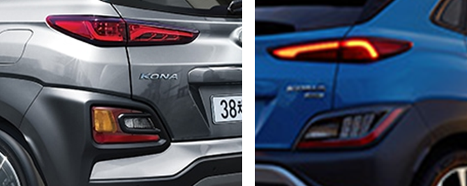 더 뉴 코나의 리어 램프는 전면 램프의 디자인 아이덴티티를 이어받아