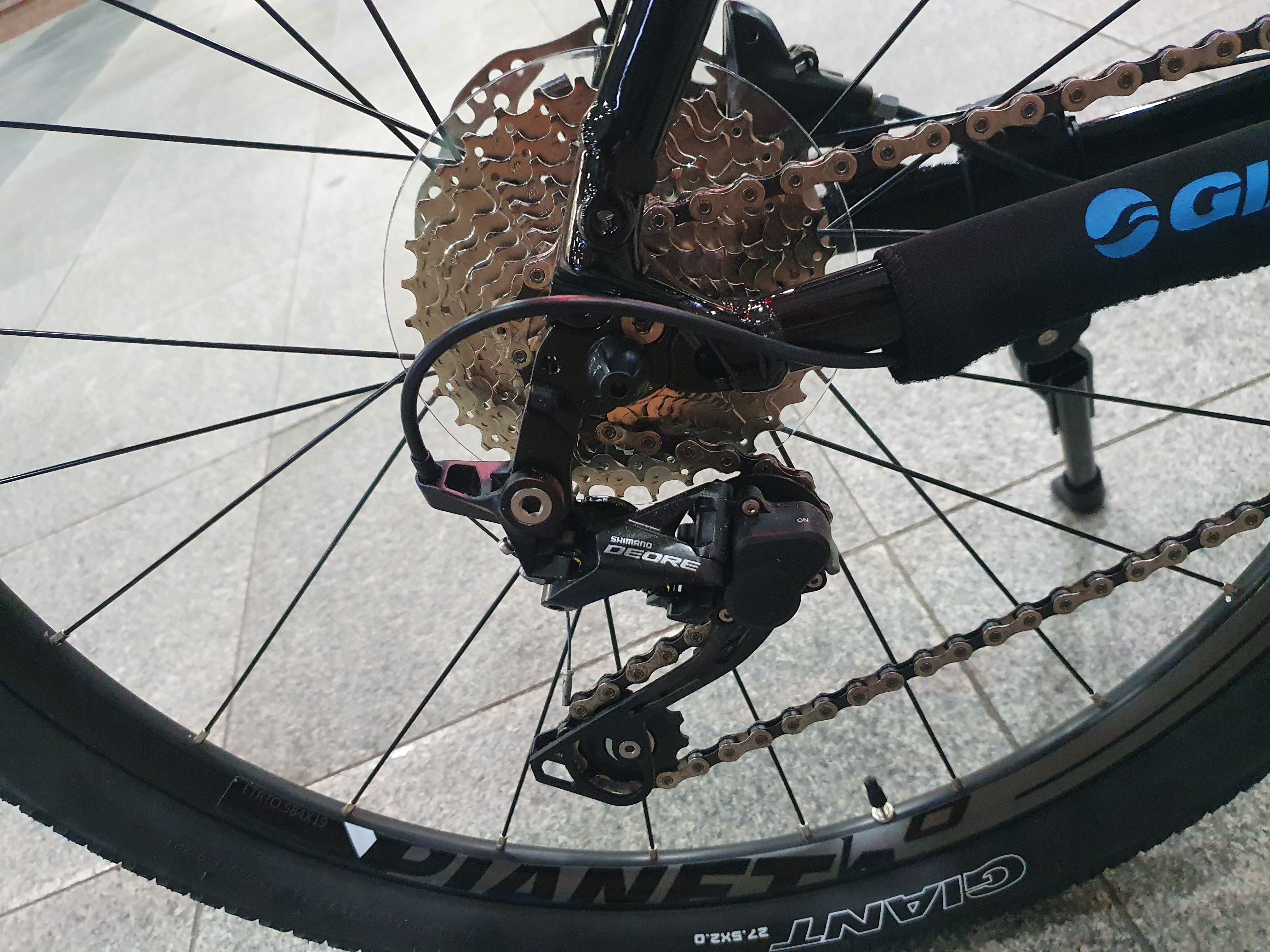 시프터, 앞/뒤 드레일러 모두 시마노 데오레가 적용되었습니다.